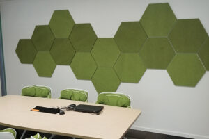 kontoritesse – visuaalselt eristuv ja samas heli neelav taust;